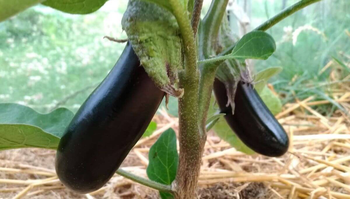 La berenjena es un pariente del tomate y el pimiento que también prospera en el calor del verano. Si se planta cuando el suelo está frío y húmedo, las plántulas harán pucheros. Cuando estaba cultivando berenjenas en mi antiguo jardín enterrado, tenía que esperar unas semanas después de la última helada para que la tierra se calentara o tenía que precalentar la tierra colocando una lámina de plástico negro sobre la superficie de la tierra para 10-14 días antes de la plantación. Con las camas elevadas, ya no tengo que preocuparme por precalentar la tierra para asegurarme de que mis trasplantes de berenjenas tengan un buen comienzo. El suelo se calienta temprano y el agua de las frecuentes lluvias primaverales se escurre rápidamente. Mantengo berenjenas criadas con jaulas de tomate.