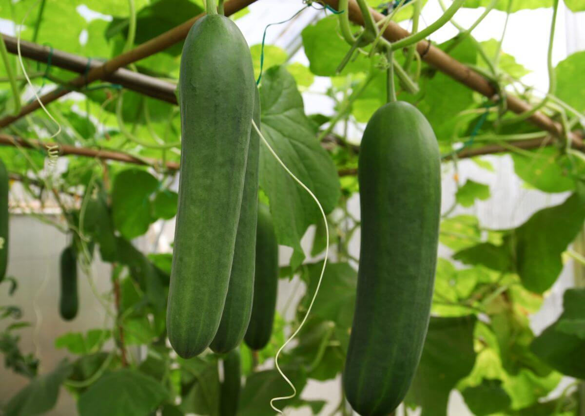 Los pepinos de vid también se pueden cultivar en lechos elevados, pero los planto en la base de un enrejado como un enrejado en forma de A. Esto evita que las plantas vigorosas se apoderen de todo el lecho elevado. Las plantas entrenadas también tienen menos problemas de insectos y enfermedades y las frutas son más fáciles de detectar.