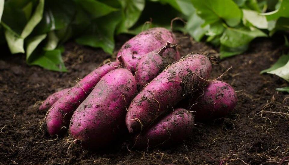 Las plantas de camote necesitan una temporada de crecimiento larga y cálida para producir una cosecha de tubérculos de buen tamaño. He tenido mucha suerte de plantar variedades de temporada corta en mis camas elevadas. Planto los esquejes a fines de la primavera, aproximadamente una semana después de la fecha de la última helada. Pronto las plantas vigorosas llenan su sección de la cama del jardín. No crecen bien en suelos densos o rocosos, pero prosperan en suelos cálidos y bien drenados en mis camas elevadas. Antes de la primera helada de otoño, cortamos las plantas y desenterramos los tubérculos, ¡qué delicia! También comemos las hojas durante el verano, sin tomar demasiado porque no queremos perjudicar el desarrollo de los tubérculos.